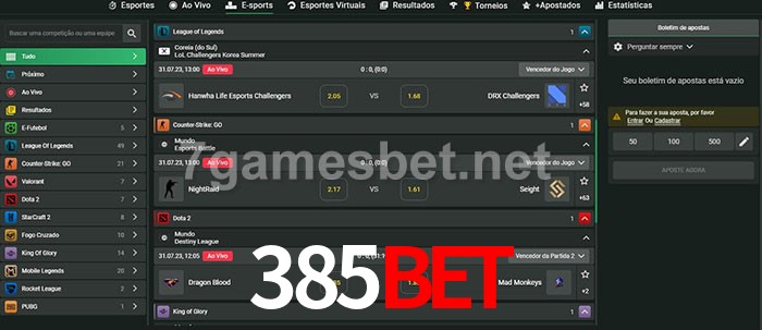 O 385bet oferece uma grande seleção de opções de apostas em e-sports com probabilidades competitivas